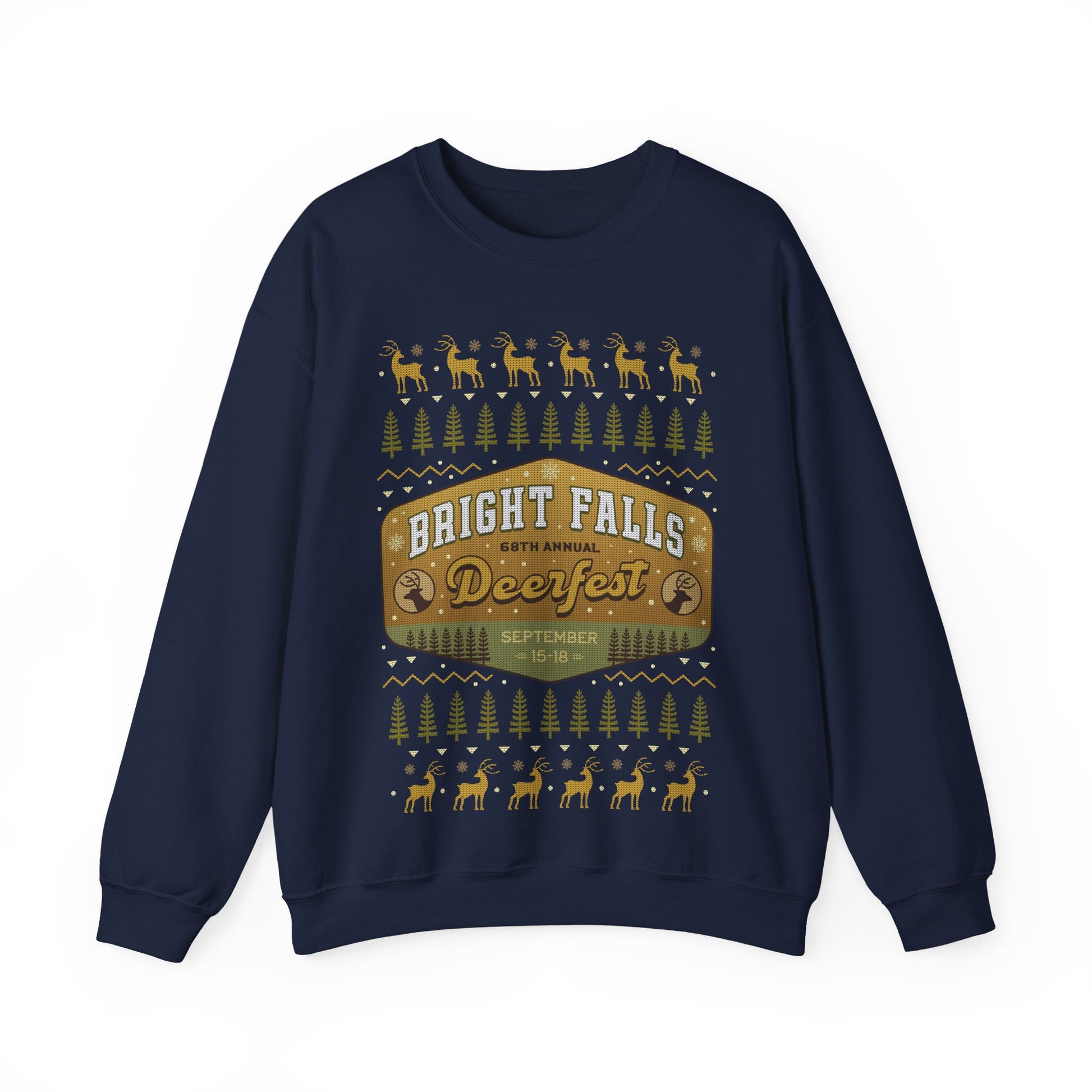 About the Deerfest Bright Falls Ugly Sweater Crewneck Sweatshirt.