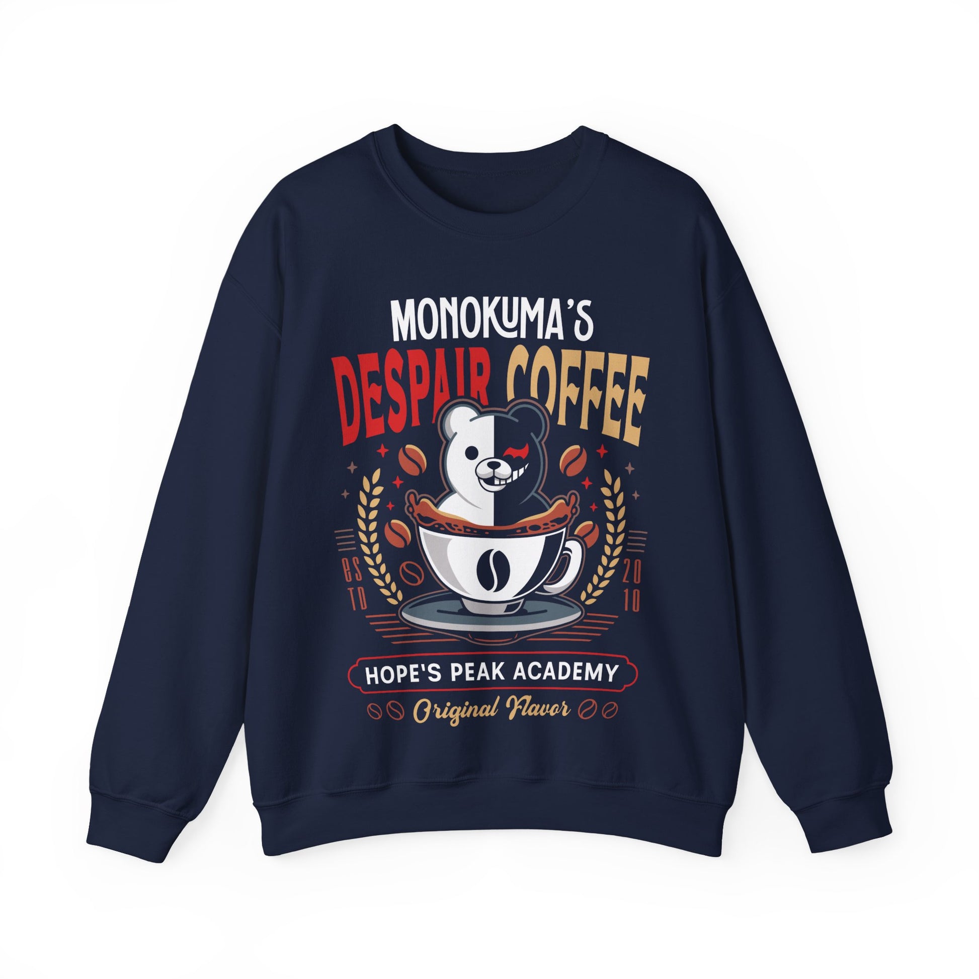 Design created by Lagelantee. Inspired by Monokuma from Danganronpa video games and anime in coffee style. If you are looking for the best graphic quality in your sweatshirt printing, this is your store. Thanks for supporting me!