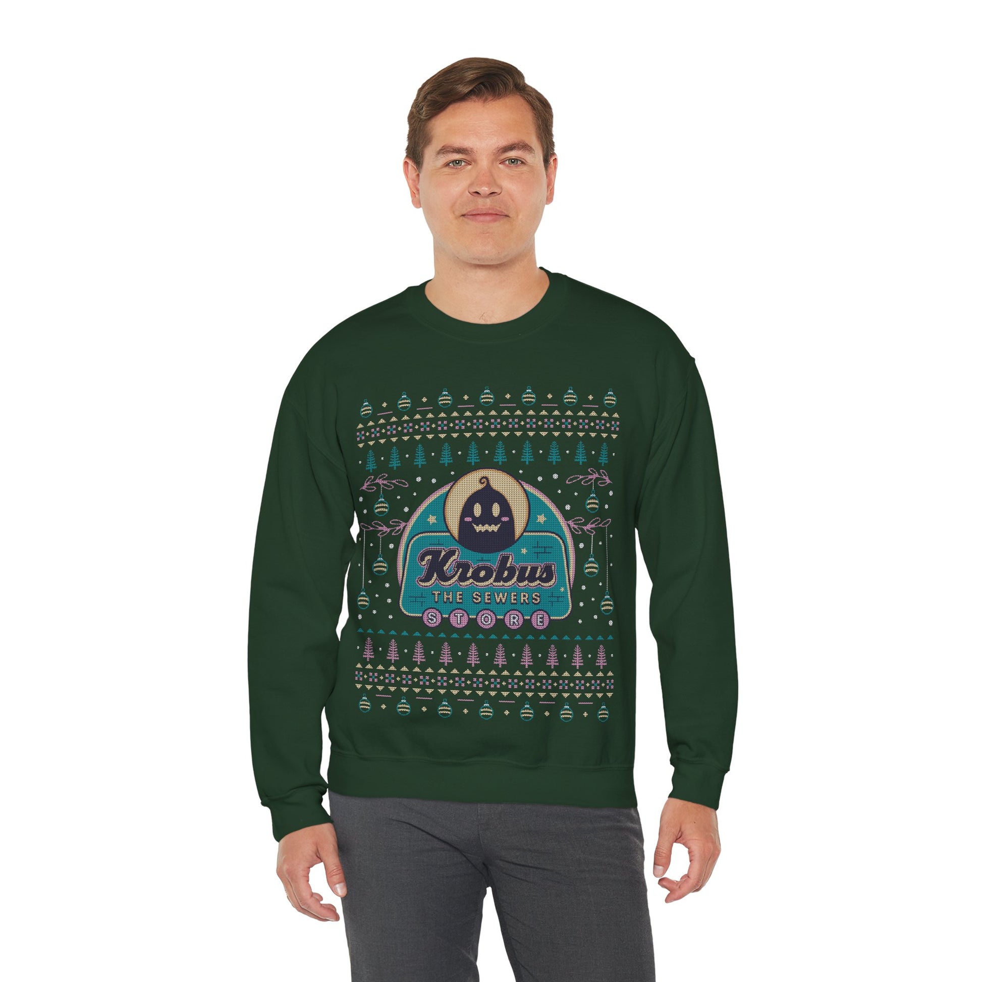 About the Krobus The Merchant Ugly Sweater Crewneck Sweatshirt.