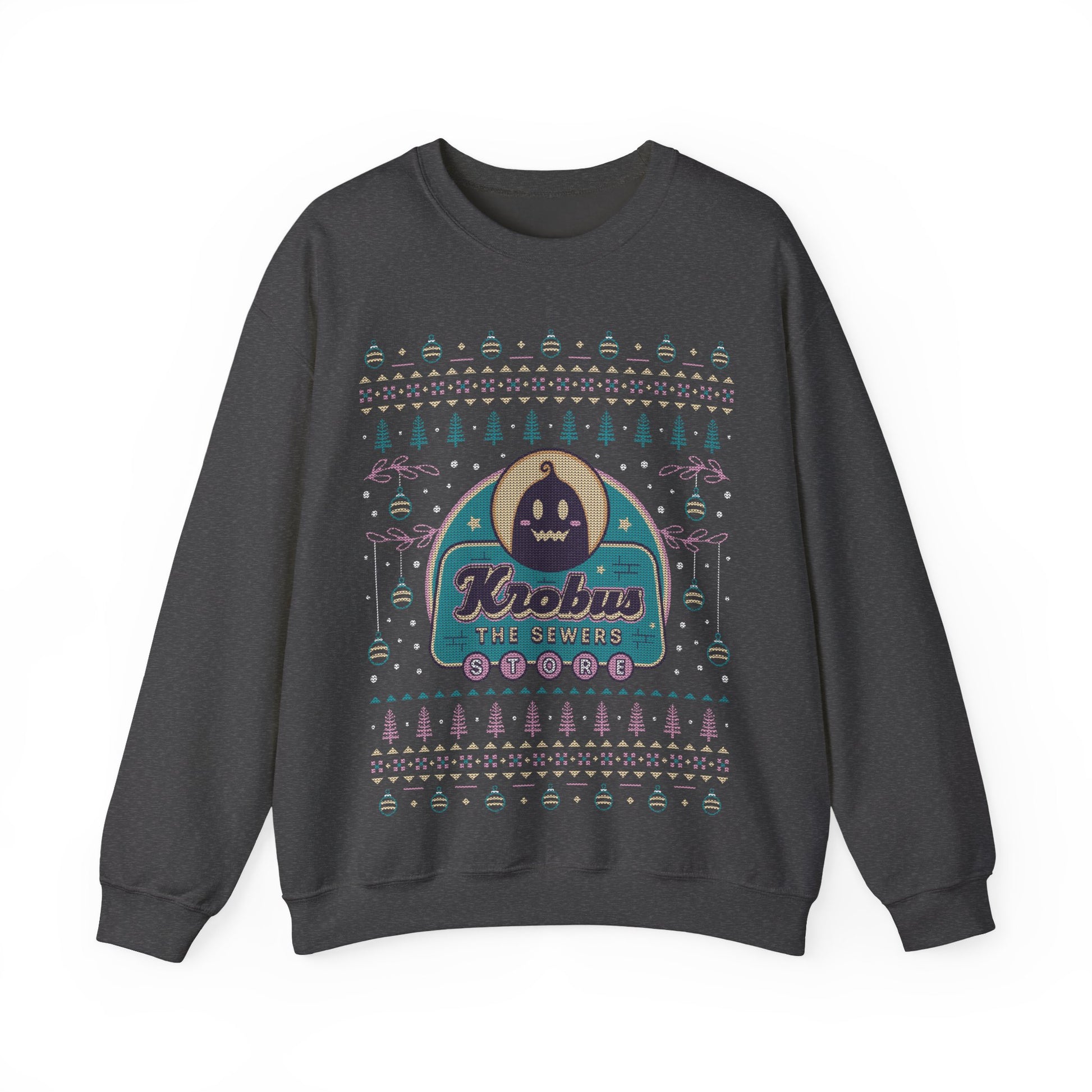 Design created by Lagelantee. Inspired by Krobus from Stardew Valley video game as an ugly christmas sweater. If you are looking for the best graphic quality in your sweatshirt printing, this is your store. Thanks for supporting me!