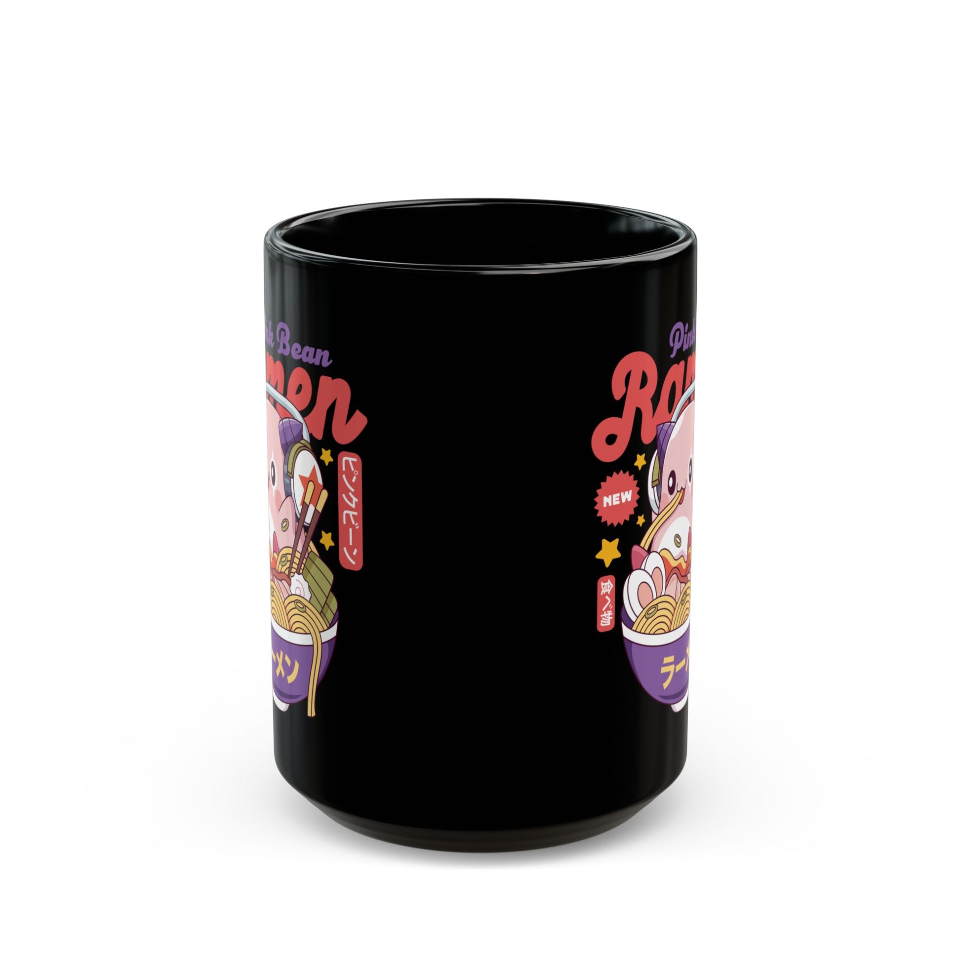 Pink Bean Ramen Kawaii Black Mug