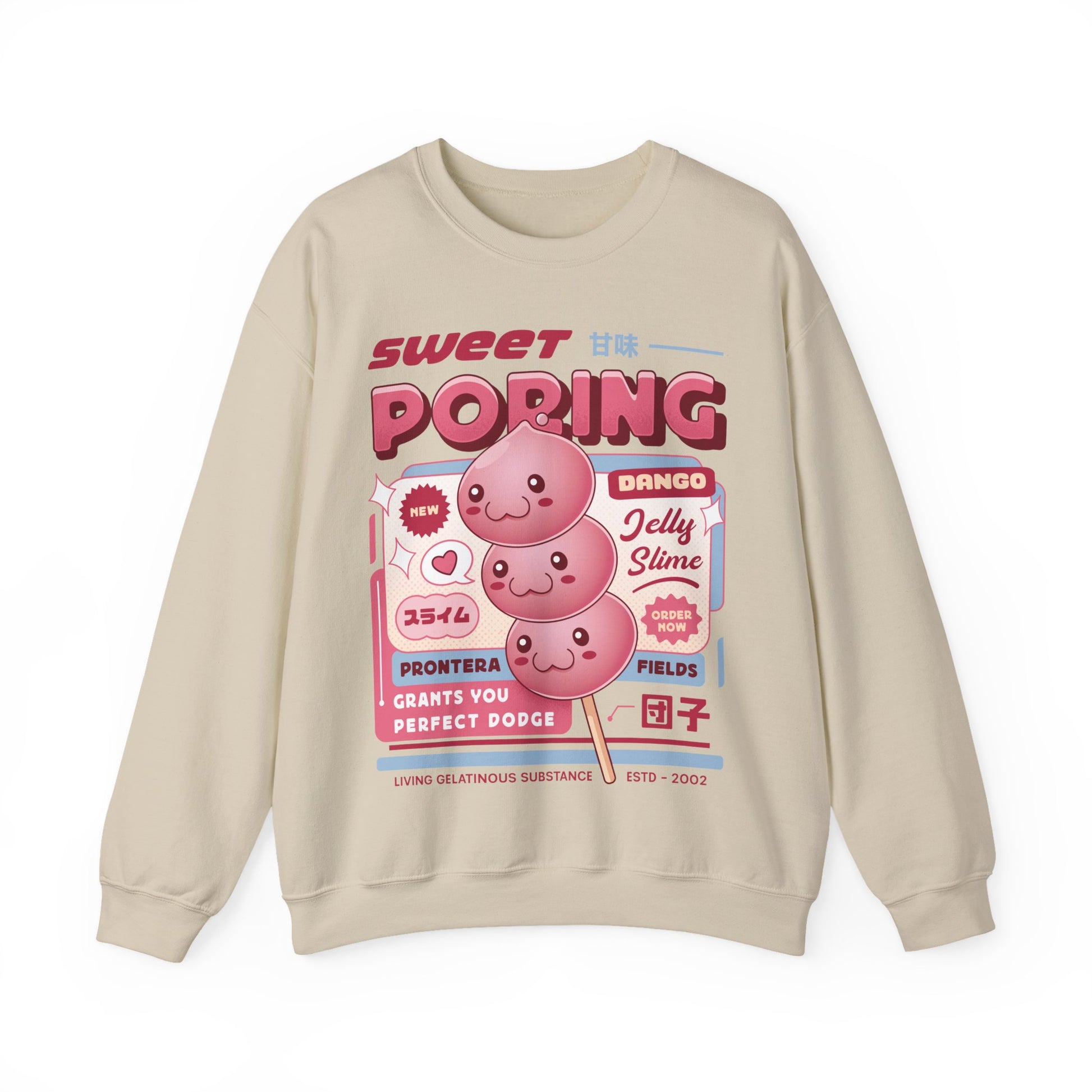 Design created by Lagelantee. Inspired by Poring from Ragnarok Online video game as a dango japanese food. If you are looking for the best graphic quality in your sweatshirt printing, this is your store. Thanks for supporting me!