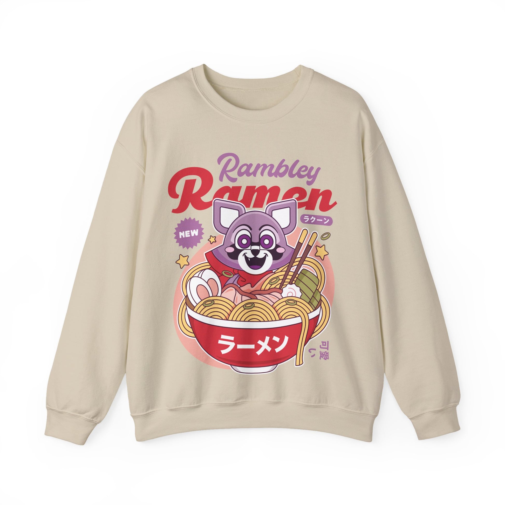 About the Rambley The Raccoon Ramen Crewneck Sweatshirt.