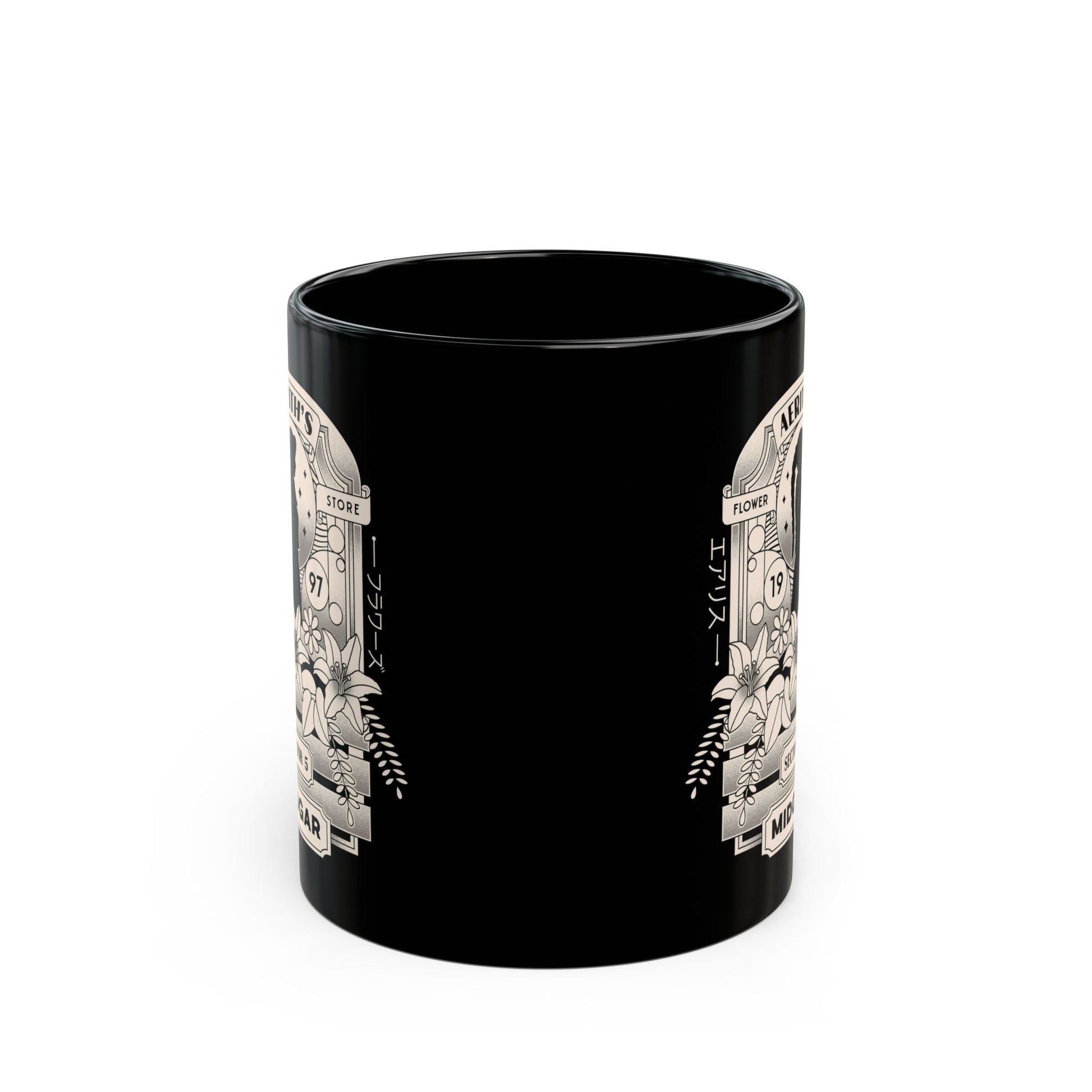 Aerith And Flowers Black Mug