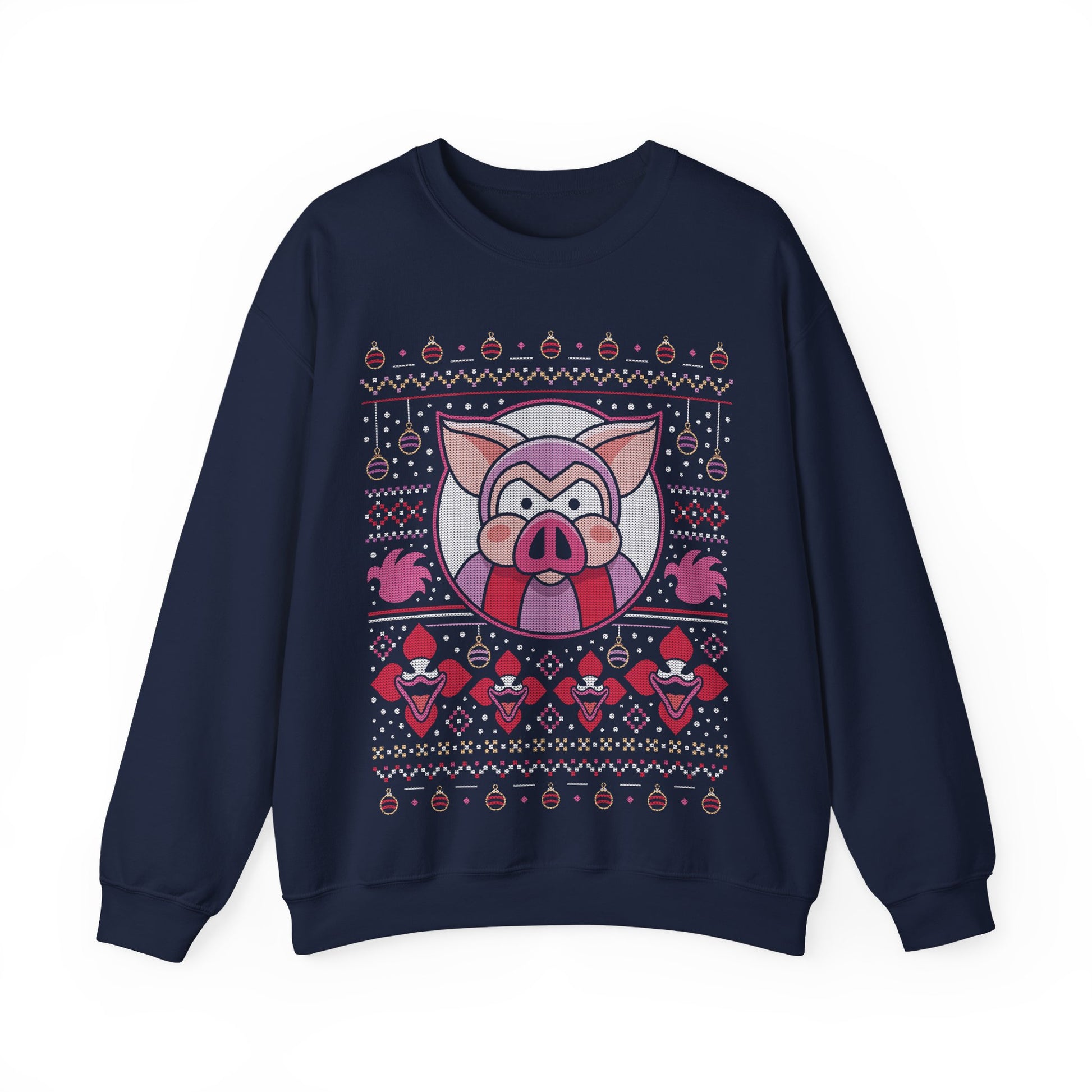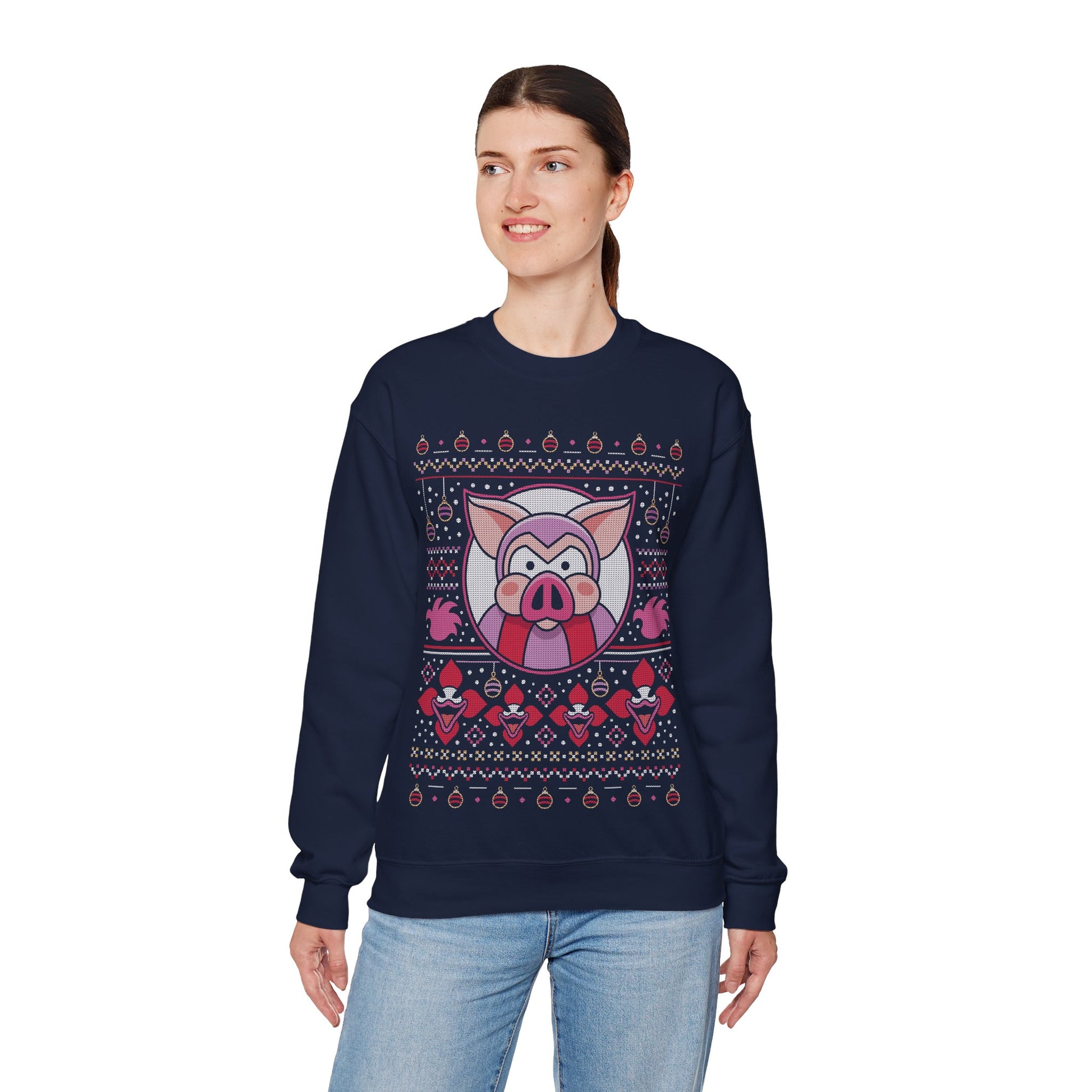 About the Evil Pigs Ugly Sweater Crewneck Sweatshirt.