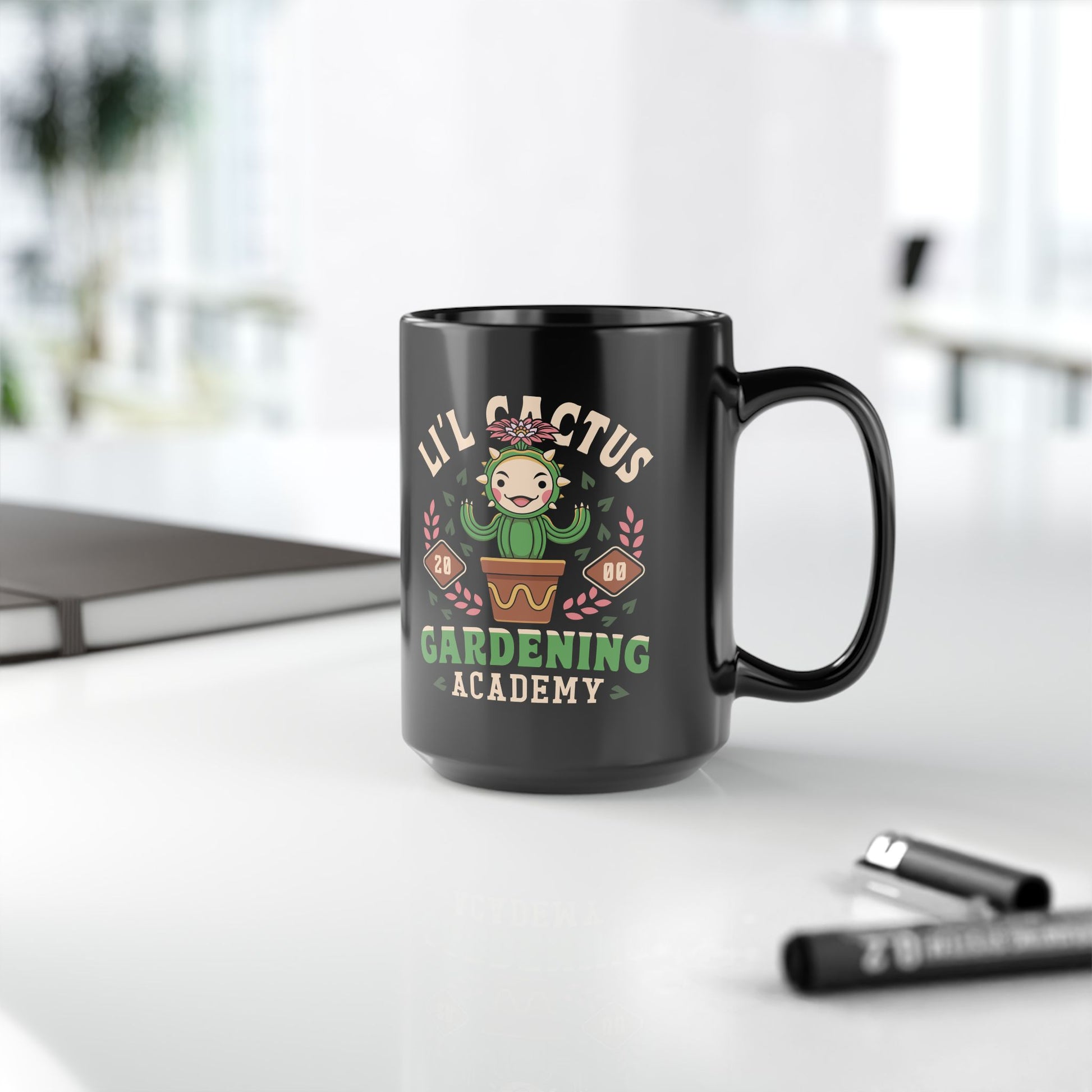 Lil Cactus Gardening Academy Black Mug