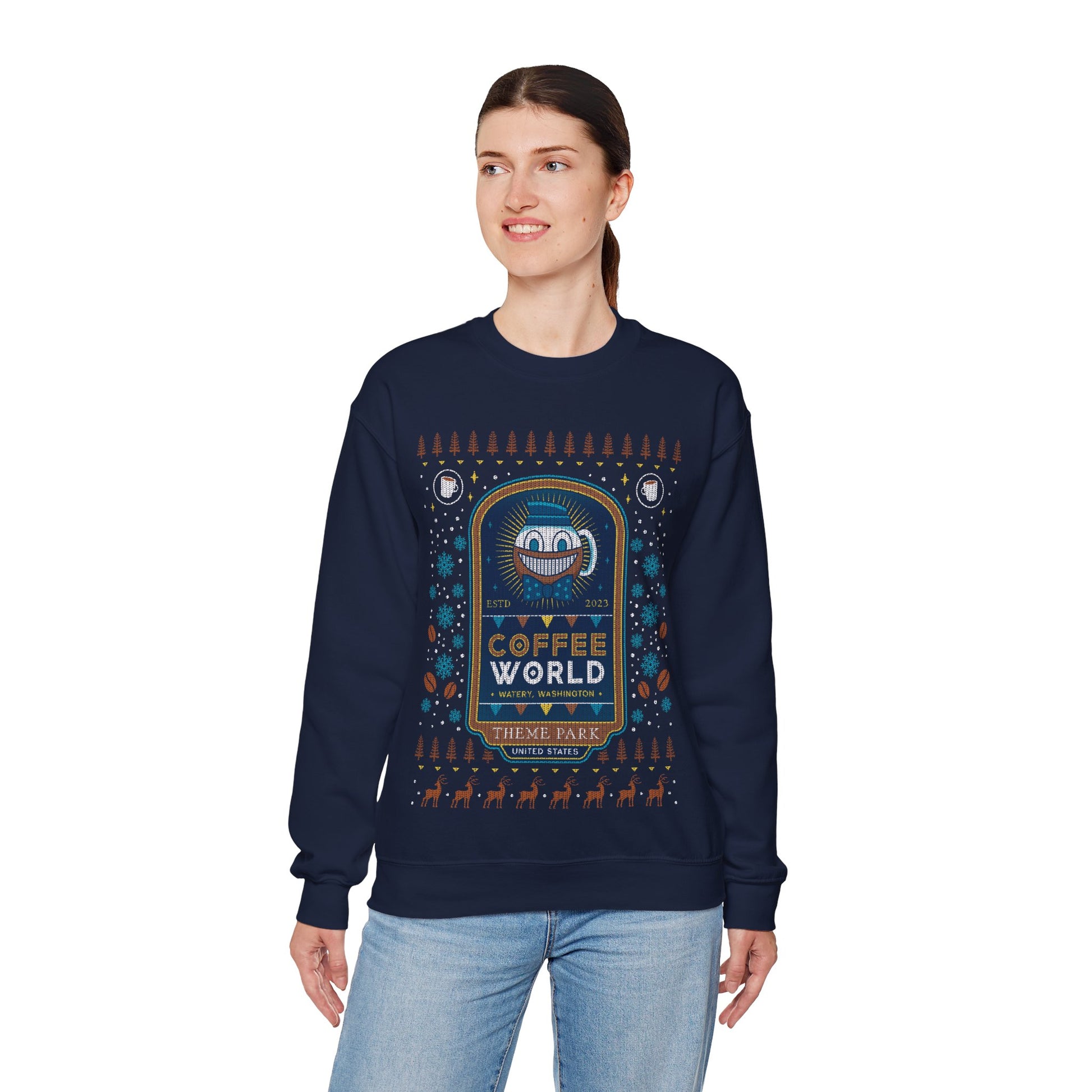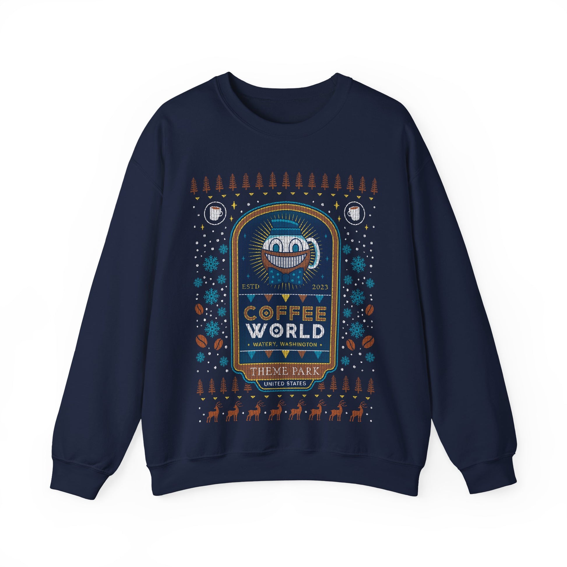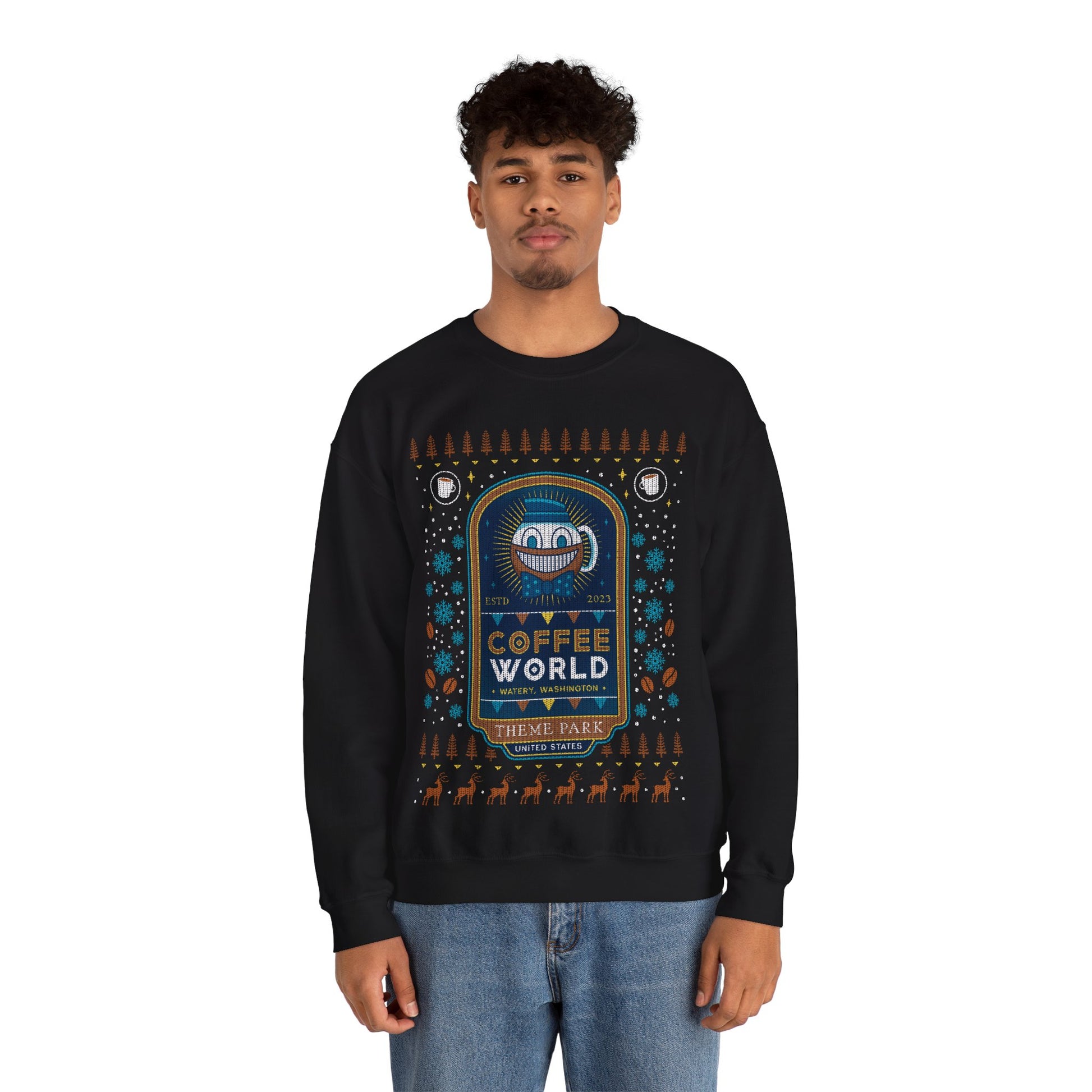 About the Watery Coffee World Ugly Sweater Crewneck Sweatshirt.